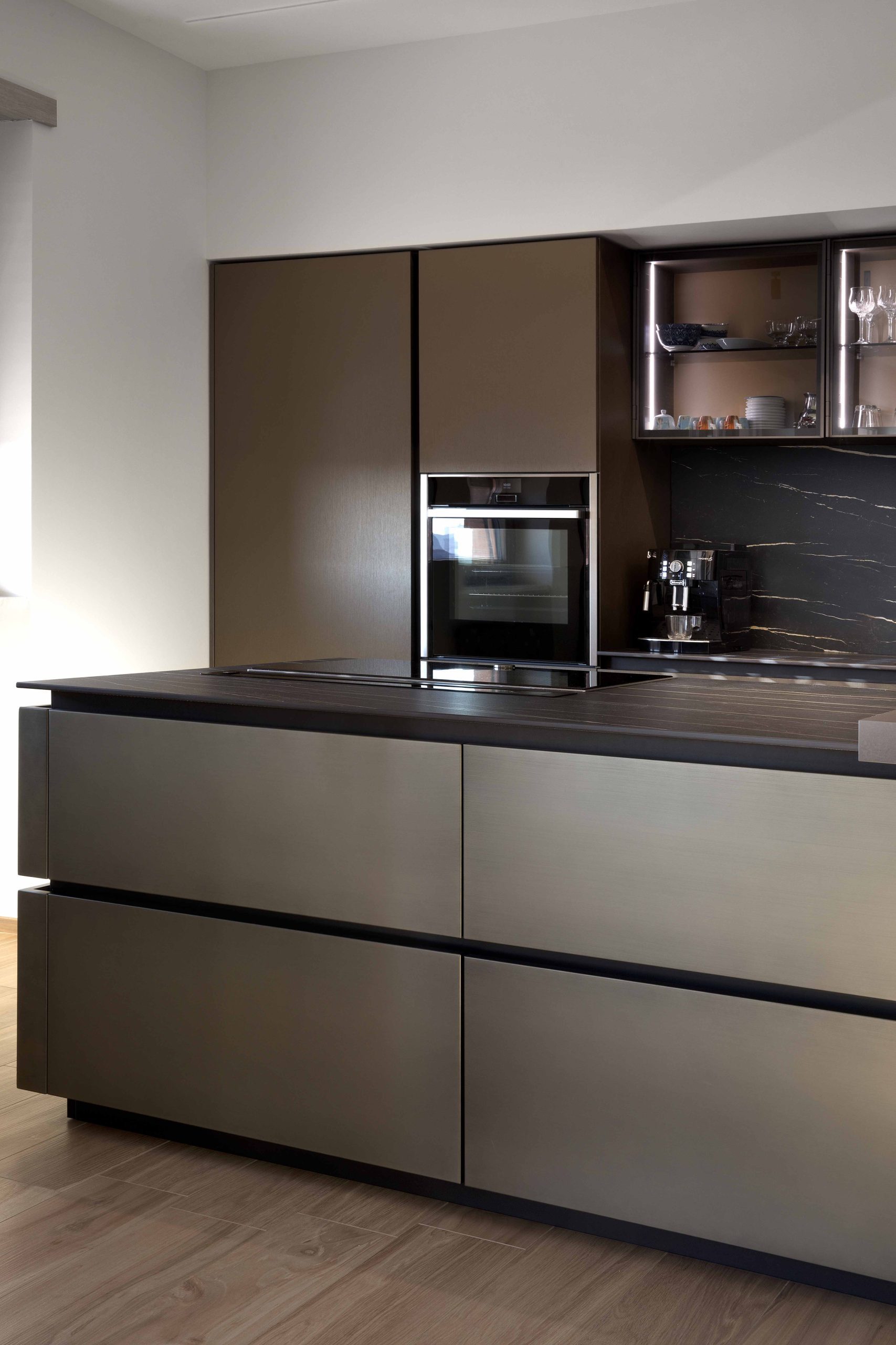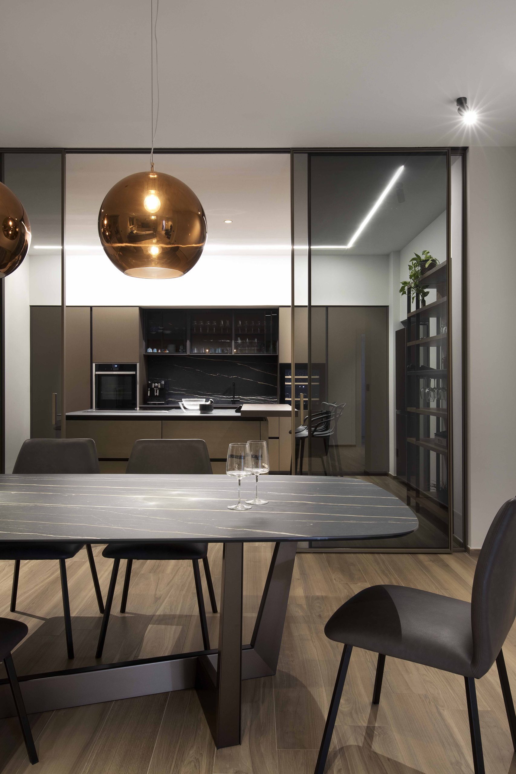 Progetto di ristrutturazione completa e arredo d’interni che interpreta lo stile metropolitano contemporaneo attraverso tonalità scure, superfici metalliche e dettagli di luce studiati per valorizzare i volumi e la profondità degli ambienti.