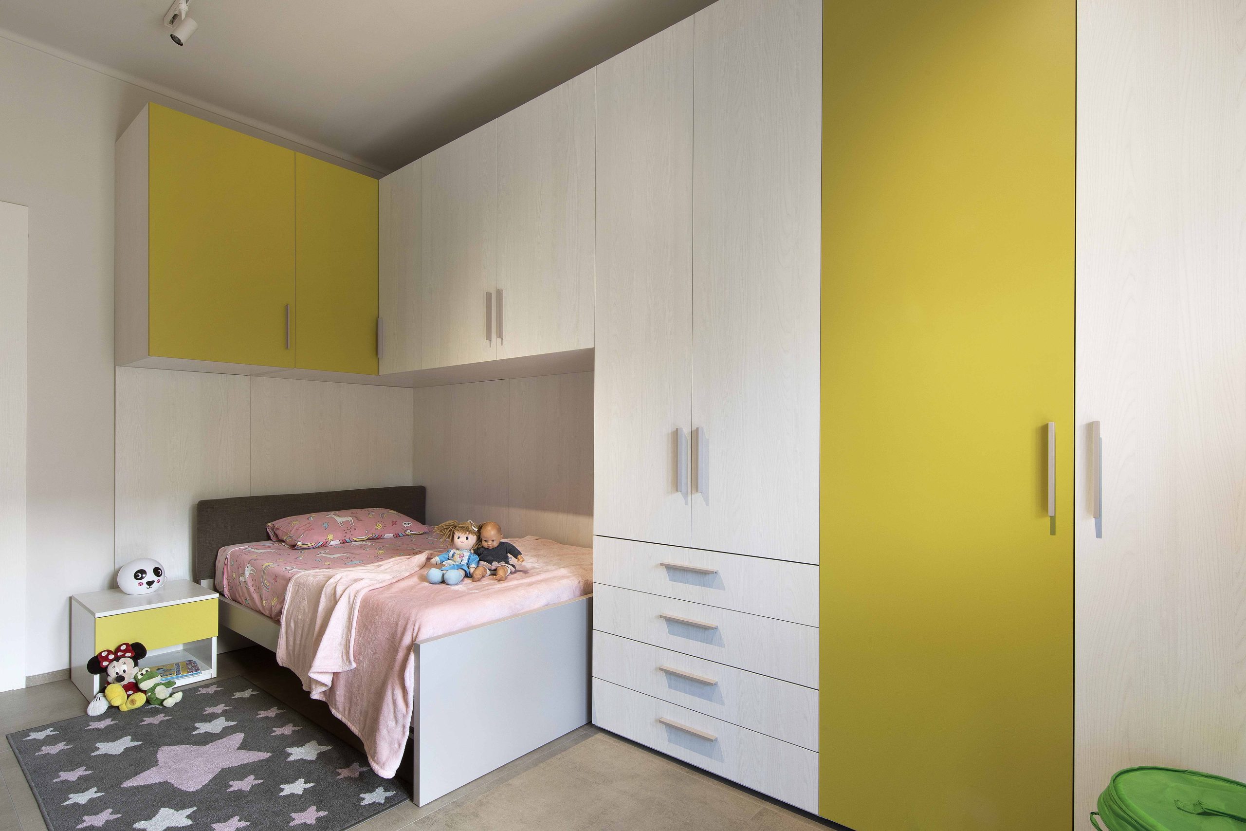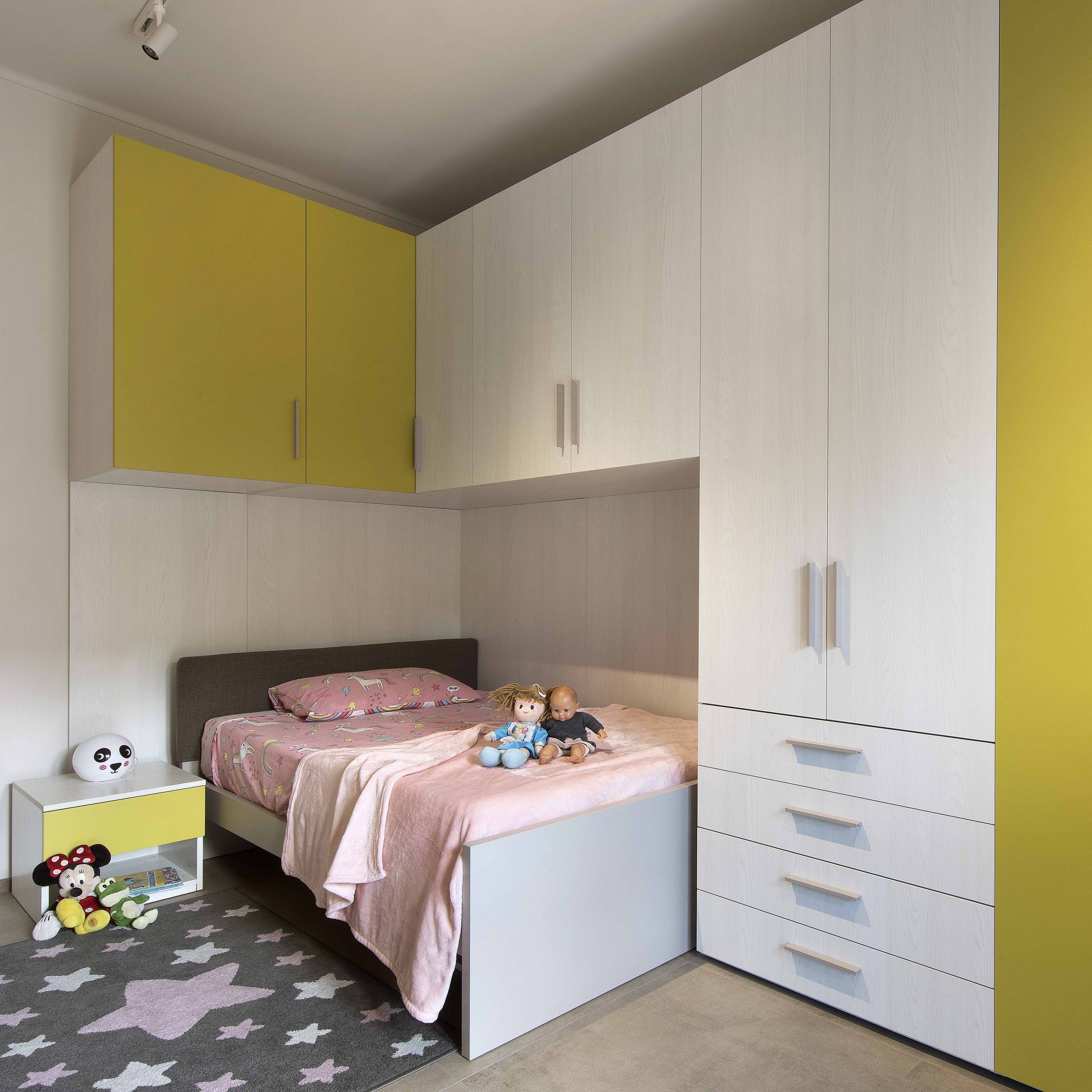 La scelta del colore per la cameretta è stata guidata dalla piccola abitante: verde acceso, vivace e giocoso.