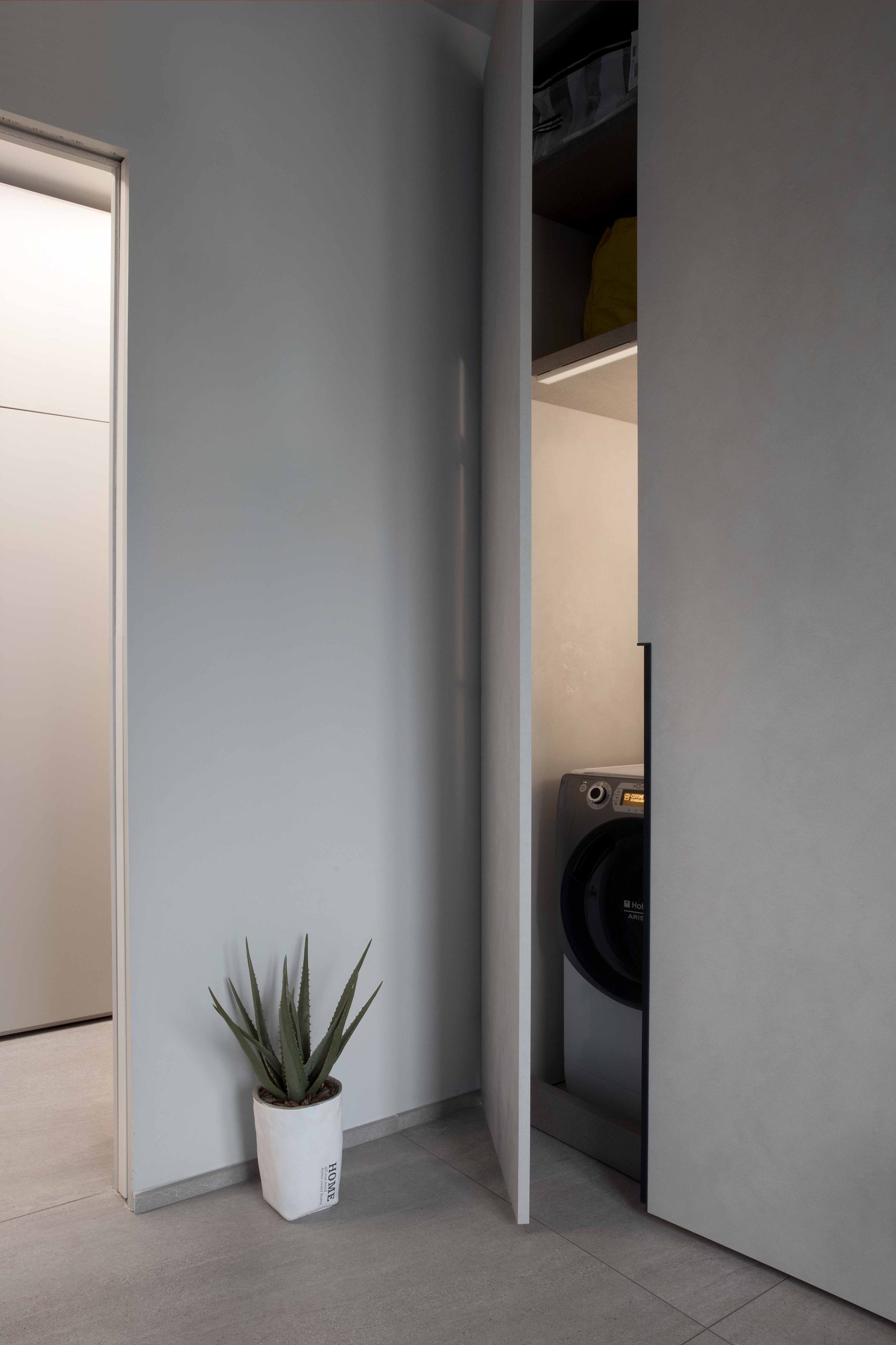 Le colonne cielo-terra ampliano la capacità contenitiva e contribuiscono a un effetto visivo più rigoroso e minimale.