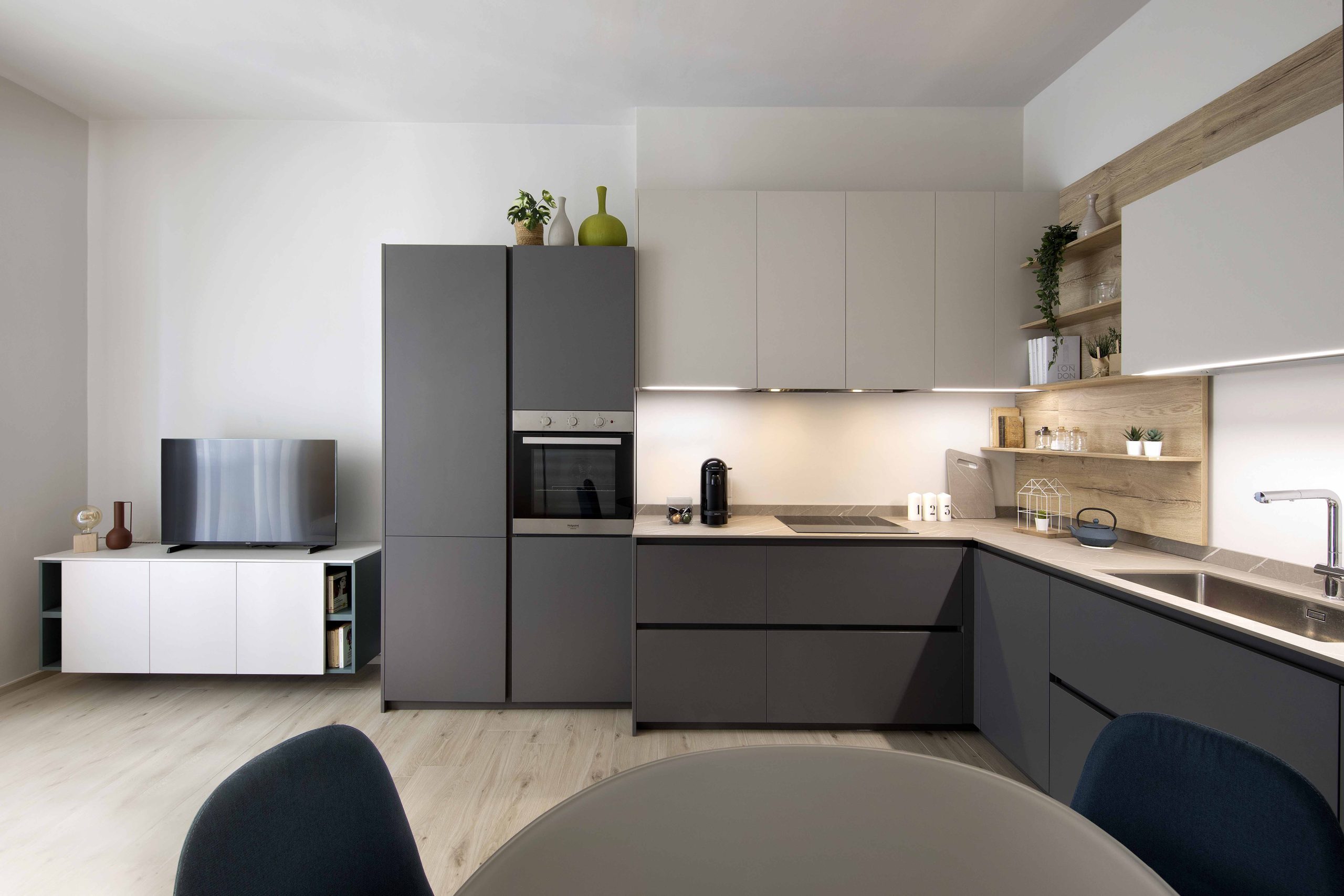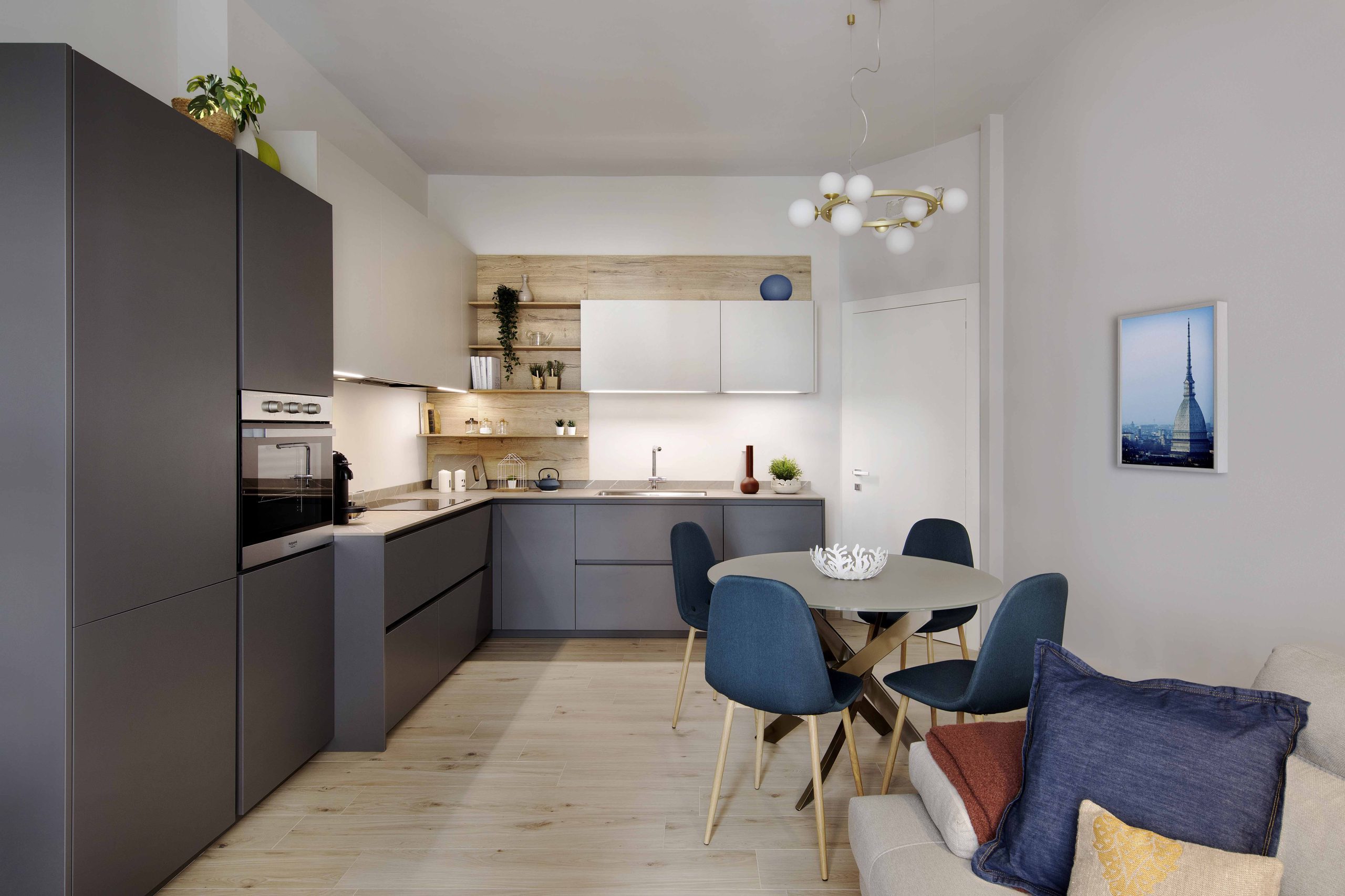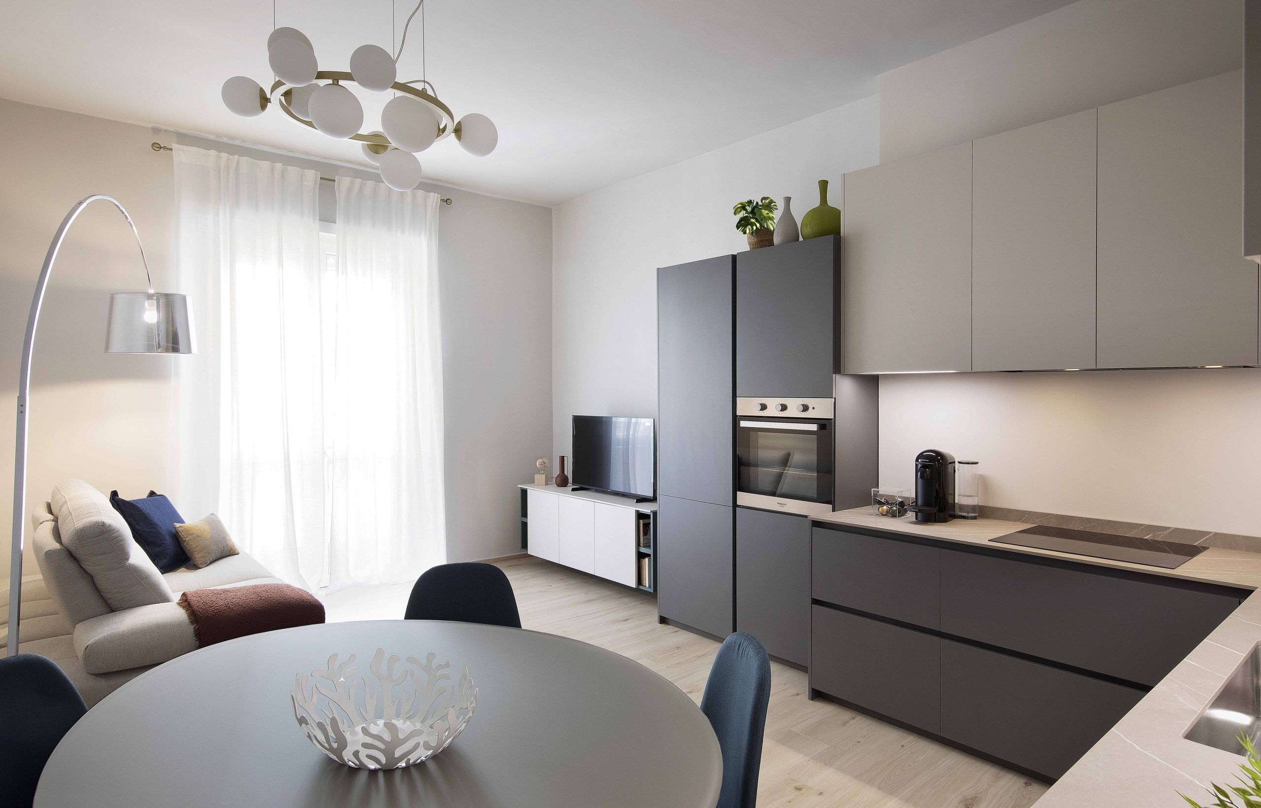 Il progetto racconta una casa giovane, elegante e luminosa, dove ogni dettaglio è pensato con armonia, trasformando una piccola abitazione in uno spazio funzionale, contemporaneo e dal carattere personale.