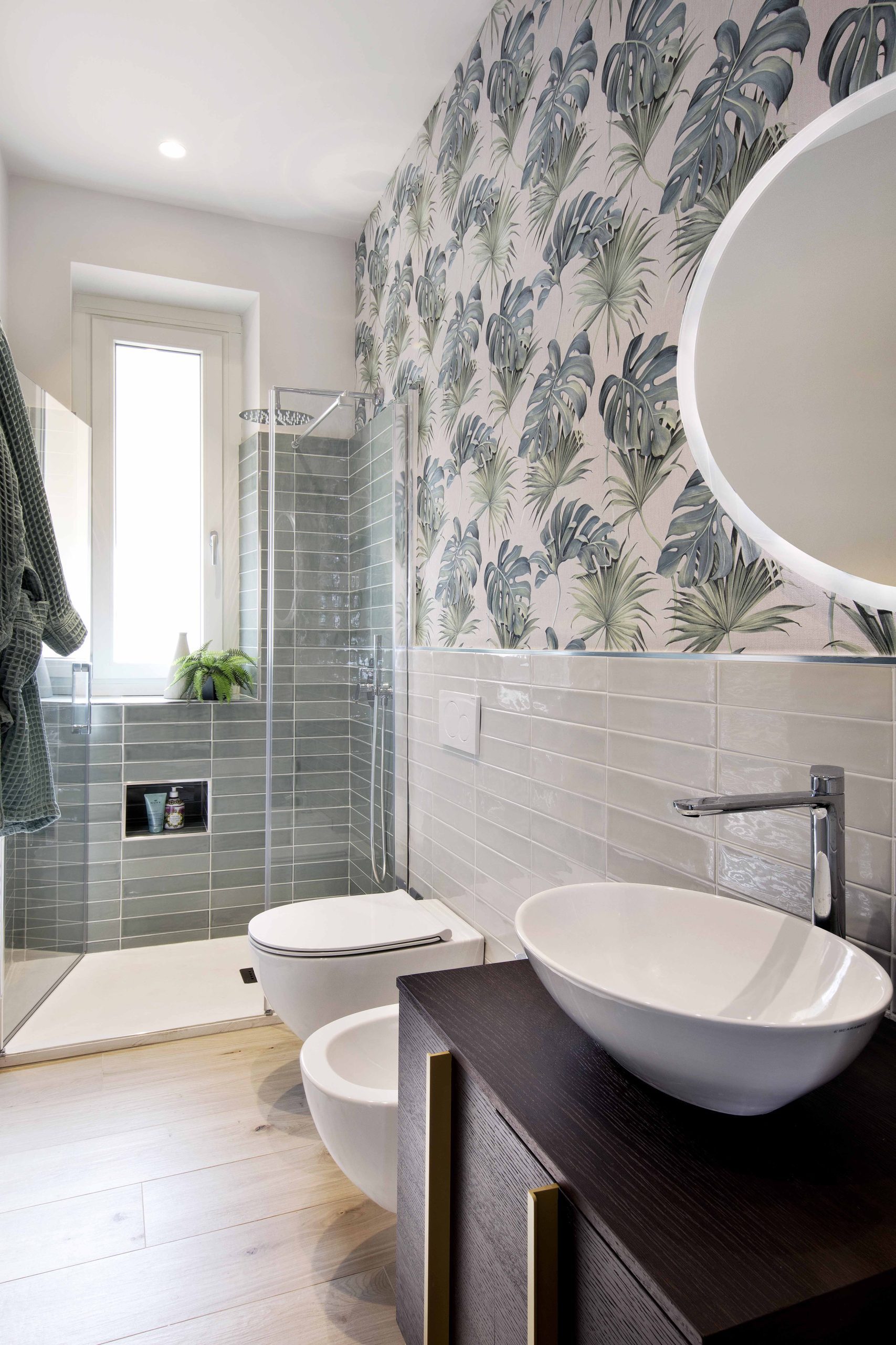 Il bagno completa il progetto, coerente con lo stile minimal e luminoso del resto della casa.