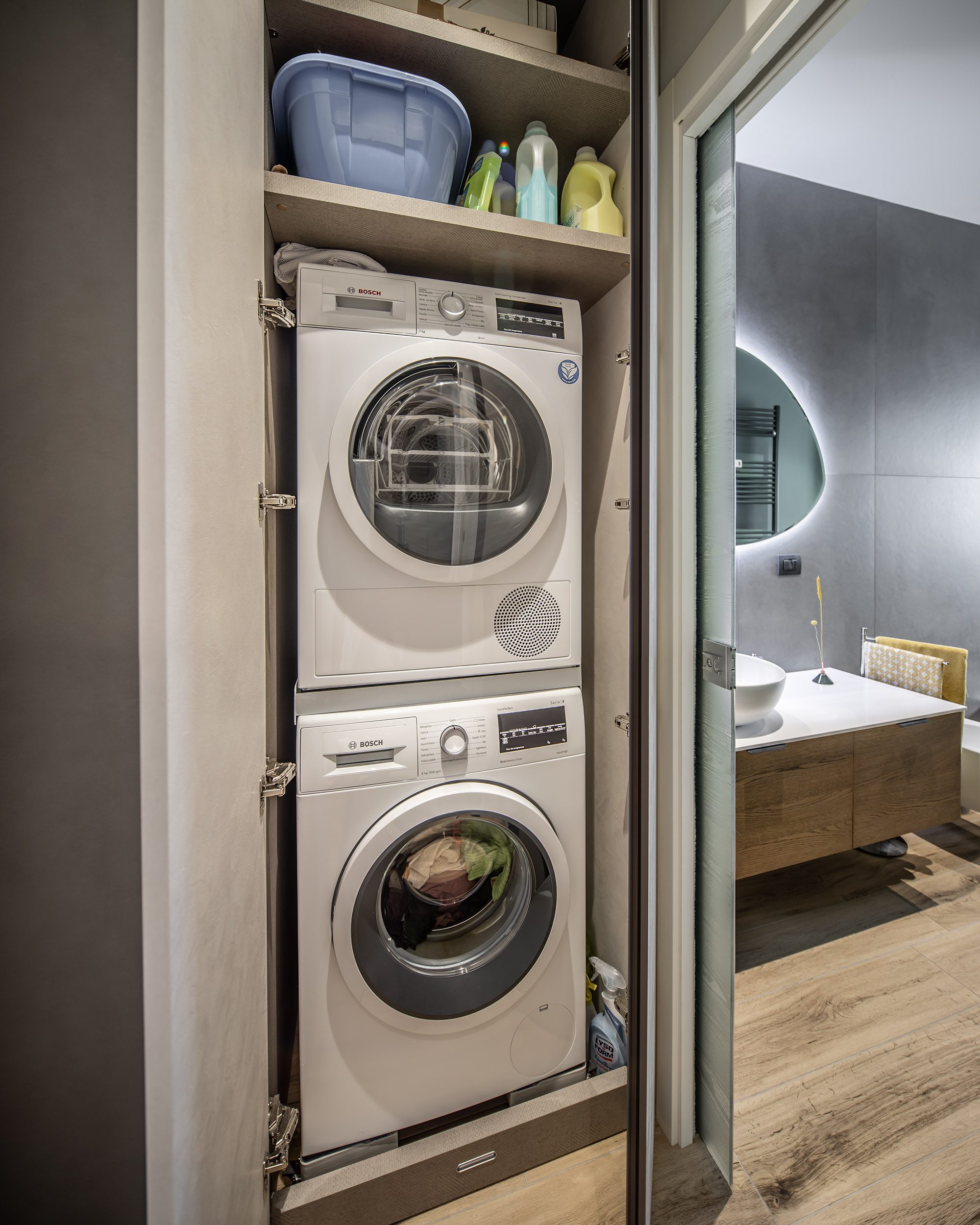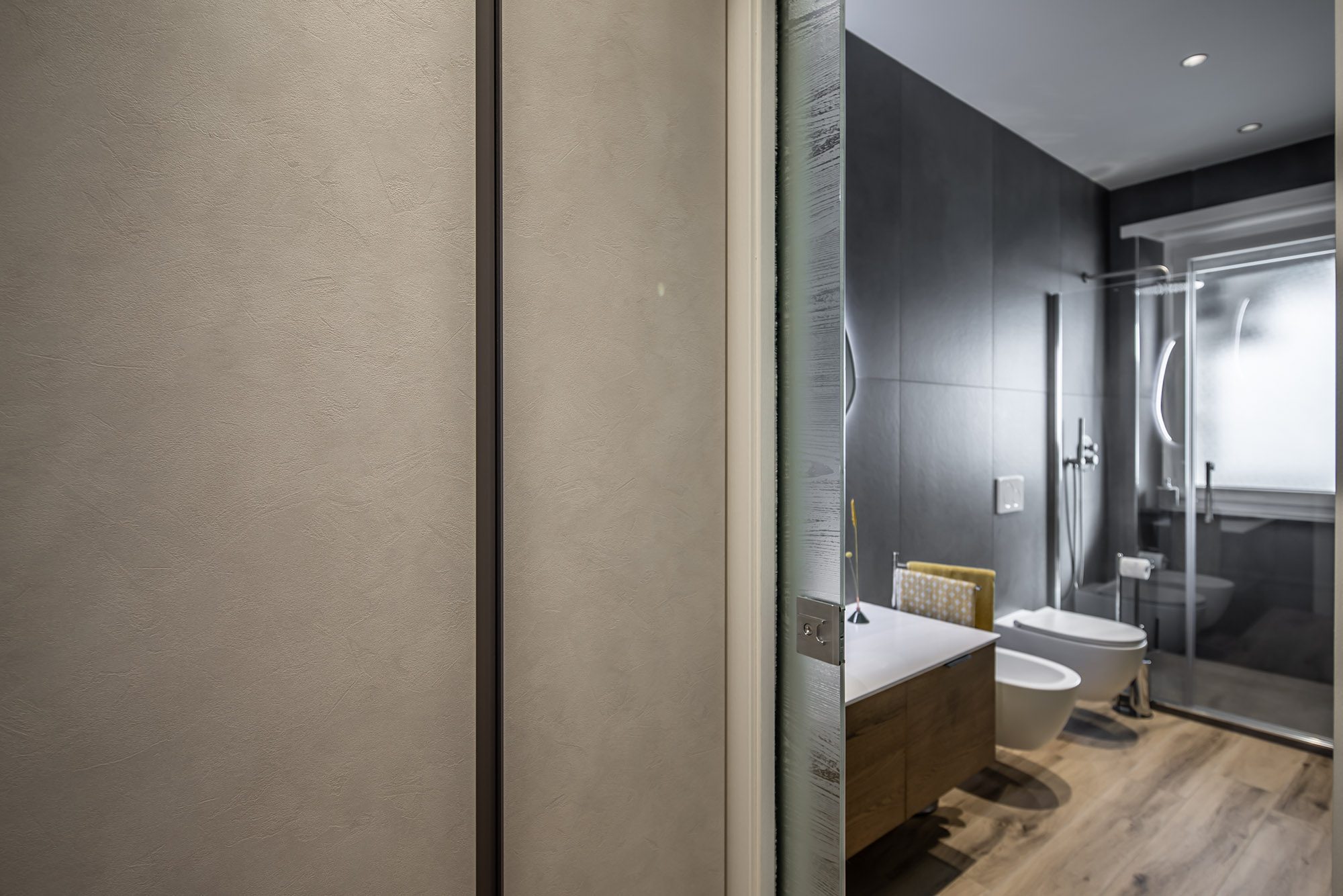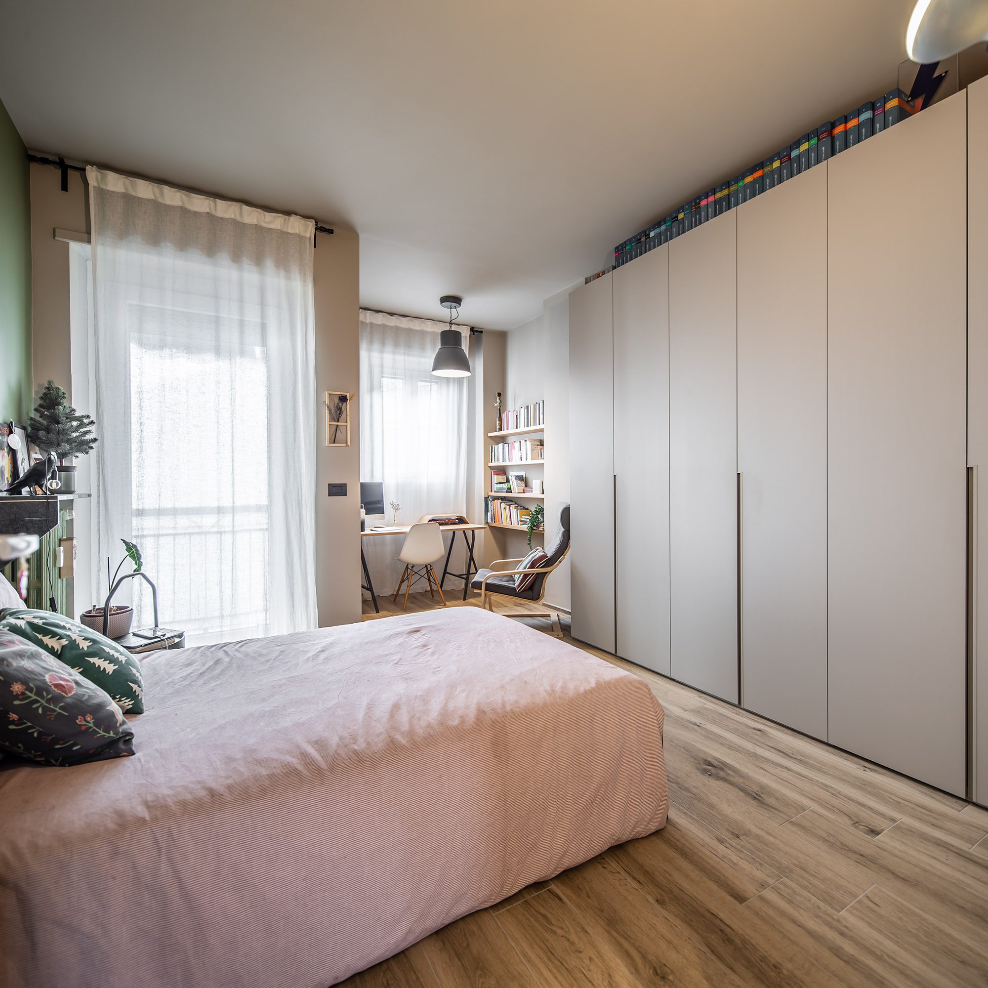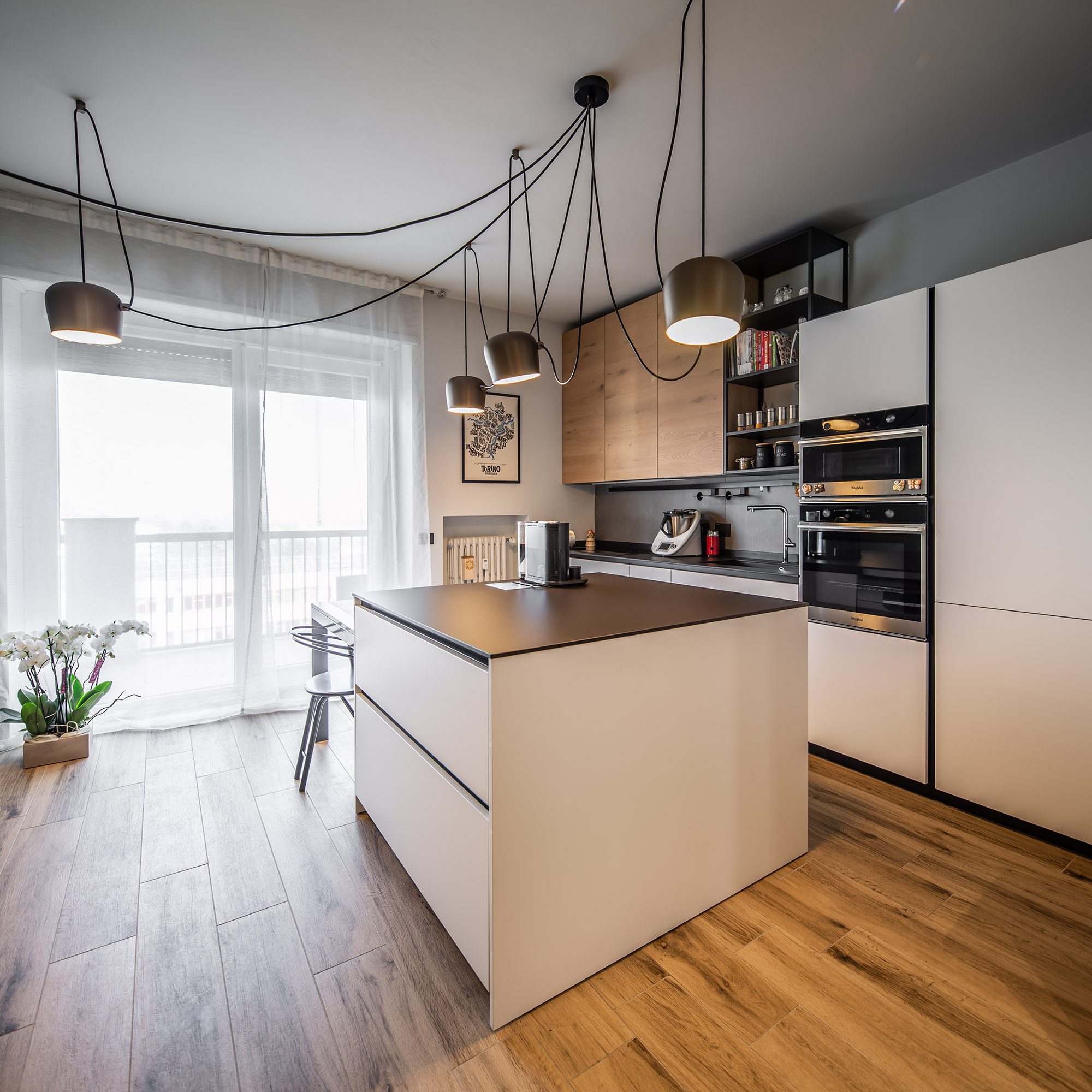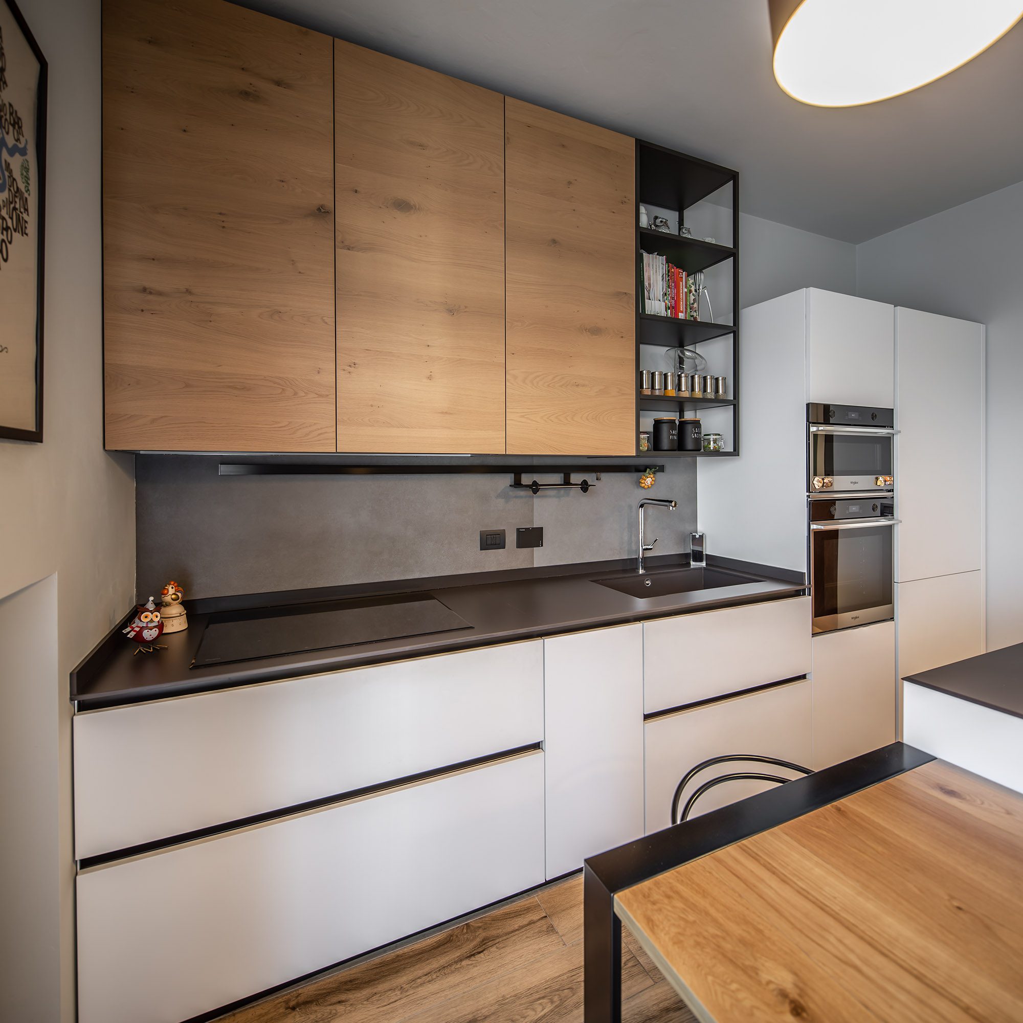 Wood meets White Ristrutturazione appartamento in stile moderno, con finiture in legno e contrasti chiaro-scuro.